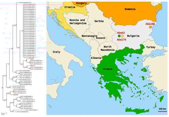 - Frenk, S.; Temkin, E.; Lurie-Weinberger, M.N.; Keren-Paz, A.; Rov, R.; Rakovitsky, N.; Wullfhart, L.; Nutman, A.; Daikos, G.L.; Skiada, A.; et al. Large-Scale WGS of Carbapenem-Resistant Acinetobacter baumannii Isolates Reveals Patterns of Dissemination of ST Clades Associated with Antibiotic Resistance. J. Antimicrob. Chemother. 2022, 77, 934–943. [Google Scholar] [CrossRef] [PubMed]
