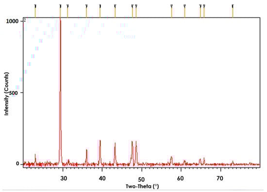 X-ray diffraction is applied to infer crystalline features, crystallite size, and crystallinity of various biomaterials such as exopolysaccharides []. The XRD diffractogram of EPS from Acinetobacter sp. shown in Figure 7 highlights the sharp peak at 29.2 θ. Most exopolysaccharide sample sizes range in this region, revealing its crystalline nature. Several smaller sharp peaks at 36, 39, 43, 47, and 48.5 θ were also observed. Sharp peaks again confirmed the crystalline structure of exopolysaccharides. The majority of exopolysaccharides reported in the literature have amorphous peak behavior (9), and the XRD patterns of EPS-P1 differ from those of biomaterials. Somehow, similar results have been reported for Bacillus tequilensis FR9 which exhibited a mixture of sharp and a little broader peak depicting its crystalline and amorphous structure [].