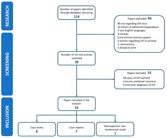 Chicago/Turabian StyleRossi, Luca, Giorgio Tiecco, Marina Venturini, Francesco Castelli, and Eugenia Quiros-Roldan. 2023. "Human Orf with Immune-Mediated Reactions: A Systematic Review" Microorganisms 11, no. 5: 1138. https://doi.org/10.3390/microorganisms11051138