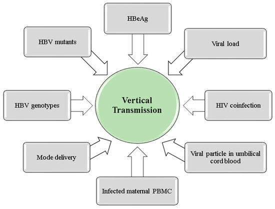 Among the risk factors identified for mother-to-child HBV transmission are HBeAg, maternal viral load, coinfection with human immunodeficiency virus (HIV), viral genotype and HBV mutants, among others (Figure 4).