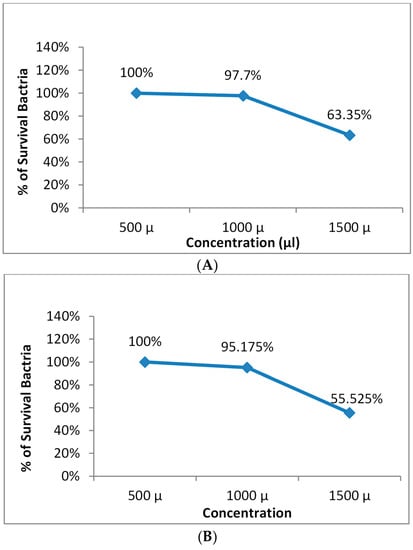 Safety of the nanoemulsion on (A) S. aureus and (B) E. coli.