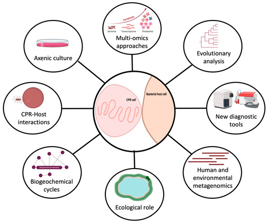 One interesting aspect of CPR organisms is that they have been found to have a high degree of genetic diversity and limited, but divergent, metabolic capacities that make them able to colonize a wide range of environments. These minimalist microbes have the potential to serve as useful model organisms for studying adaptation in various ecological niches. They are small but powerful microorganisms that can do more than expected with minimum genetic content. There is a critical need to improve techniques to enable fast and comprehensive analysis of their metabolic pathways, especially in order to access the biologically useful context that can be extracted from this information (Figure 2). CPRs hold enormous potential for biological and medical discoveries, providing valuable insights into the diversity and complexity of life on Earth.