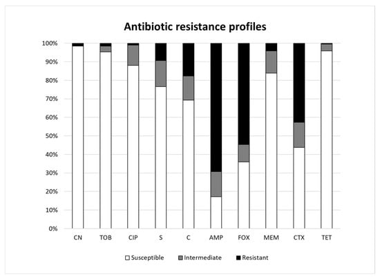 | Antibiotic resistance | AMP, FOX | AMP, FOX | AMP | n.d. | AMP | CIP, AMP, MEM, CTX | AMP | ||