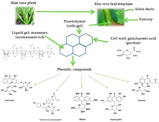 The main phenolic compounds of the Aloe vera plant and their chemical structures [102].