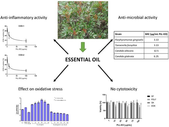- Raghavenra, H.; Diwakr, B.T.; Lokesh, B.R.; Naidu, K.A. Eugenol—The active principle from cloves inhibits 5-lipoxygenase activity and leukotriene-C4 in human PMNL cells. Prostaglandins Leukot. Essent. Fat. Acids 2006, 74, 23–27. [Google Scholar] [CrossRef]