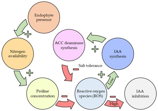 | Enterobacter sp. SA187 | Indigofera argentea | Sulphur metabolism, reduced ROS accumulation, salt tolerance | [101] | Bacteria |