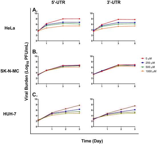 - Franco, E.J.; Hanrahan, K.C.; Brown, A.N. Favipiravir Inhibits Zika Virus (ZIKV) Replication in HeLa Cells by Altering Viral Infectivity. Microorganisms 2023, 11, 1097. [Google Scholar] [CrossRef]