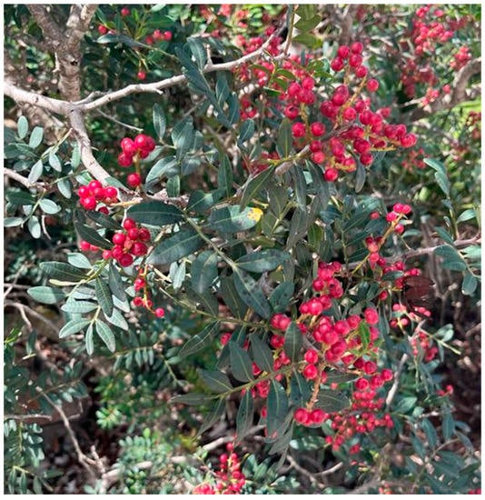 A female plant of the wild-growing shrub Pistacia lentiscus L.