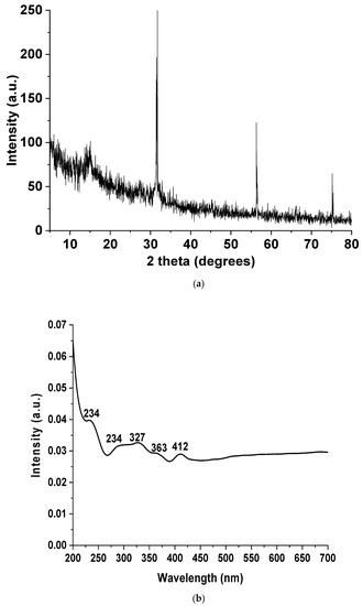 The diffraction pattern of the Tri-CSZ NPs (a) and UV–visible spectrum of the Tri-CSZ NPs (b).
