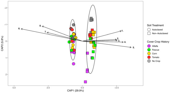 3.2. Effect of Cover Crop and Biomass Incorporation on the Soil Microbiome