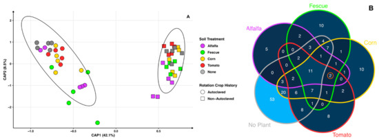 - Li, K.; DiLegge, M.J.; Minas, I.S.; Hamm, A.; Manter, D.; Vivanco, J.M. Soil sterilization leads to re-colonization of a healthier rhizosphere microbiome. Rhizosphere 2019, 12, 100176. [Google Scholar] [CrossRef]