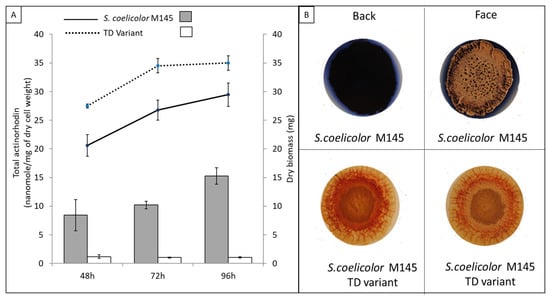 - Van Keulen, G.; Dyson, P.J. Production of specialized metabolites by Streptomyces coelicolor A3(2). Adv. Appl. Microbiol. 2014, 89, 217–266. [Google Scholar] [CrossRef]