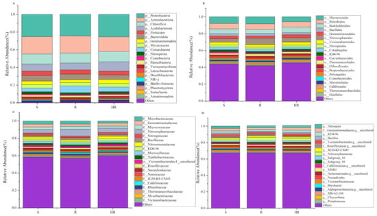 3.2. Differences in the Composition of Microbial Communities in HR, R, and S