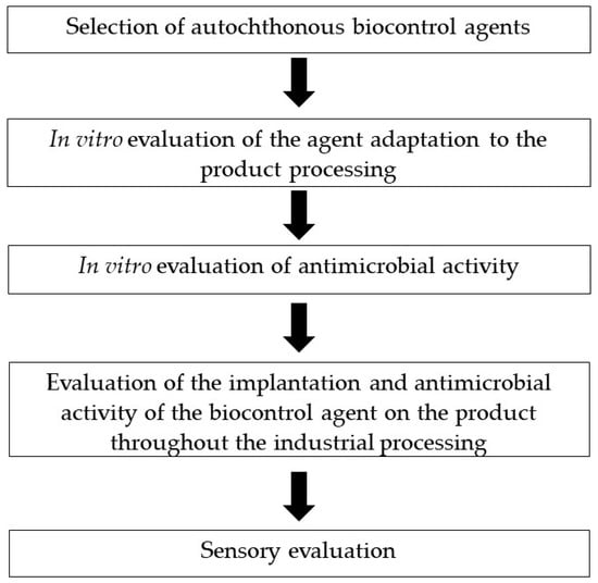 There are several effective treatments that could be applied in ripened foods of animal origin, including physical methods (heat treatments, ionizing radiation, high hydrostatic pressures) and chemical preservatives (organic acids, antifungal compounds, nitrates and nitrites). However, these methods are not always compatible with the ripening process and can have a negative impact on the organoleptic characteristics of the final product since they are not selective, i.e., they can damage the beneficial microbiota of these ripened foods [27]. In addition, it has been reported that the inappropriate or continuous application of different synthetic compounds to control the pathogenic microorganisms could favor their resistance [28]. Moreover, consumers currently demand clean label products that are free from chemical additives and preservatives [29]. Therefore, preventive measures, such as strategies to control pathogenic or spoilage microorganism in ripened foods of animal origin, are currently based on the use of biocontrol agents (BCAs) of either microbial [30,31,32,33,34,35,36,37,38,39] or plant-based origin, such as essential oils (EOs) and spices [40,41,42,43,44,45]. These treatments should have a low environmental impact and a neutral or positive influence on the sensory properties of the ripened foods of animal origin, since their organoleptic characteristics are well defined and highly appreciated by consumers.
