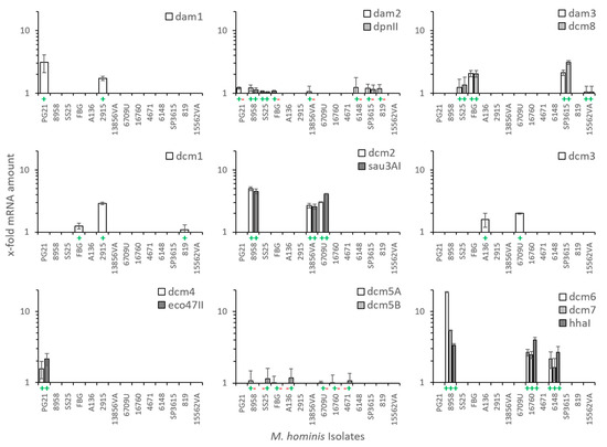 In a selection of M. hominis strains, the expression of each DNA MTase was detected at the transcript level (Figure 4).