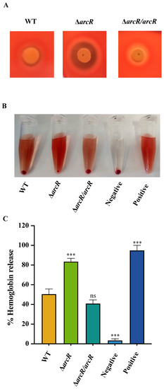 3.1. Deletion of arcR Increased the Hemolytic Activity in S. aureus