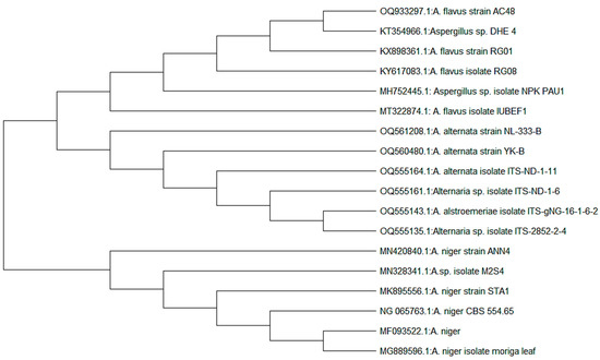 Phylogenetic trees of fungal isolates (A. niger, A. flavus and A. alternata).