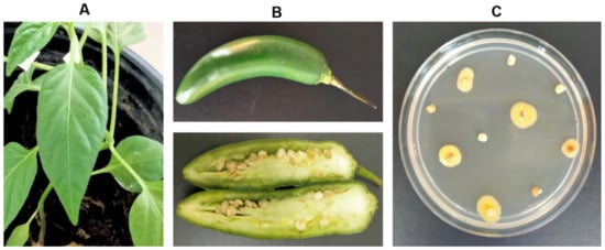 Serrano pepper fruits inoculated with K. cowanii Ch1 and controls were analyzed for 7 days post inoculation, and seeds were obtained and placed on a TSA medium (Difco Laboratories; Detroit, MI, USA) supplemented with 100 µg/mL ampicillin and incubated at 37 °C for 24 h. Bacterial colonies that were grown close to the seeds were analyzed by PCR using primers 27F and 1492R for 16s rRNA [16]. The amplicons obtained were sequenced at Macrogen Inc. (Seoul, Republic of Korea) and analyzed using MEGA X with the neighbor-joining method. The evolutionary distances were computed using the Jukes-Cantor method and compared with the sequence of K. cowanii Ch1 [17,18,19,20,21].