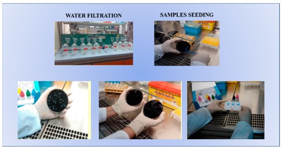 The ARPA Campania Laboratory carries out its activities for the research environmental sources of contagion for Legionella spp. after the reporting of individual cases or clusters of cases who have stayed at the same site by the National Public Health Institute. The laboratory is accredited according to the UNI CEI EN ISO/IEC 17025 standard [20] for the isolation, quantification, and typing of Legionella spp. in environmental samples with the cultural method, according to the UNI EN ISO 11731:2017 method [21], and for sampling according to the UNI EN ISO 19458:2006 standard (Figure 1).