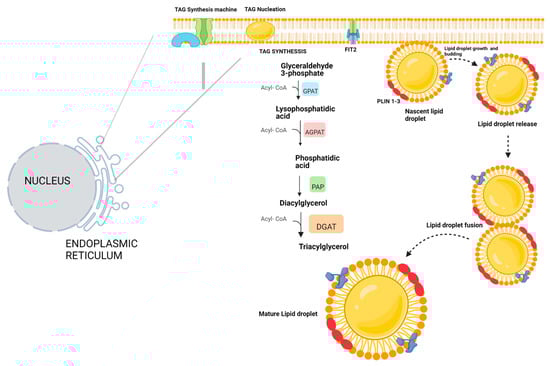 The biogenesis of LDs is significantly involved with the endoplasmic reticulum (ER), with enzymes integral to LDs biogenesis identified as anchored to the ER membrane []