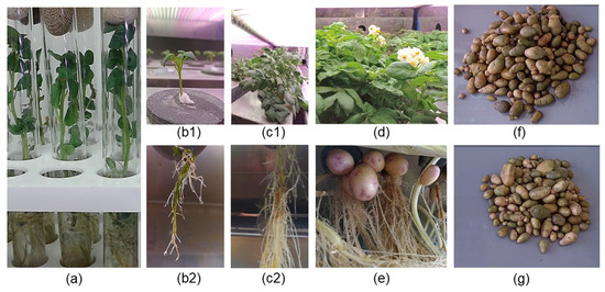 - Tkachenko, O.V.; Evseeva, N.V.; Terentyeva, E.V.; Burygin, G.L.; Shirokov, A.A.; Burov, A.M.; Matora, L.Y.; Shchyogolev, S.Y. Improved production of high-quality potato seeds in aeroponics with plant-growth-promoting rhizobacteria. Potato Res. 2021, 64, 55–66. [Google Scholar] [CrossRef]