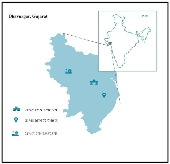 Geographical distribution of the sampling locations in Bhavnagar, Gujarat (India).