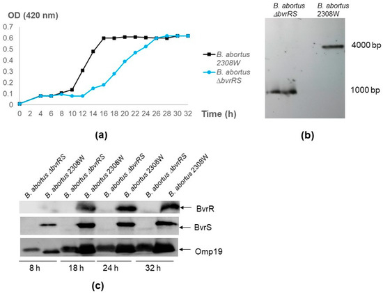 - Altamirano-Silva, P.; Meza-Torres, J.; Castillo-Zeledón, A.; Ruiz-Villalobos, N.; Zuñiga-Pereira, A.M.; Chacón-Díaz, C.; Moreno, E.; Guzmán-Verri, C.; Chaves-Olarte, E. Brucella abortus Senses the Intracellular Environment through the BvrR/BvrS Two-Component System, Which Allows B. Abortus To Adapt to Its Replicative Niche. Infect. Immun. 2018, 86, e00713-17. [Google Scholar] [CrossRef]
