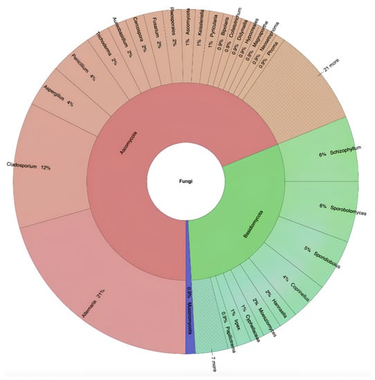 Fungi are among the most abundant organisms in the biosphere, playing a number of very important roles in the environment. For instance, fungi act as decomposers, breaking down dead organic matter and replenishing the soil with essential nutrients. They also provide numerous benefits to modern society through their use in the pharmaceutical, beverage, and food industries [1,2,3,4]. However, fungi are also considered a source of air pollution, causing various diseases and allergies, and being responsible for a number of infections in humans and animals [5,6]. Fungal spores constitute an important type of bioaerosol and can be found in far higher numbers than pollen grains in the air [7]. Numerous previous studies have reported a strong connection between many adverse health problems and long-term exposure to fungal spores [8,9,10,11,12]. Over 80 fungal species have been identified as the source of respiratory tract allergy symptoms, and more than 100 fungal genera have been reported to be associated with human and animal severe infections [7]. Infectious diseases resulting from the inhalation of different fungi are determined by the quantity and size of inhaled fungal particles. Fungal spores with a diameter of less than 5 µm are capable of penetrating the alveoli, resulting in allergic alveolitis and other serious diseases [7,13]. Spores of airborne fungi can cause type I hypersensitivity and they can also induce some respiratory reactions [7]. Previous studies have found that airborne fungi can be linked to human lung cancer when the fungus Aspergillus flavus, which produces aflatoxin B, enters the human respiratory tract via inhalation or ingestion [14,15,16,17].