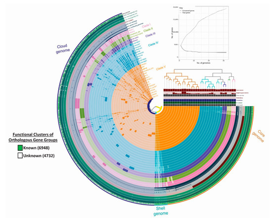 - Vernikos, G.; Medini, D.; Riley, D.R.; Tettelin, H. Ten years of pan-genome analyses. Curr. Opin. Microbiol. 2015, 23, 148–154. [Google Scholar] [CrossRef] [PubMed]