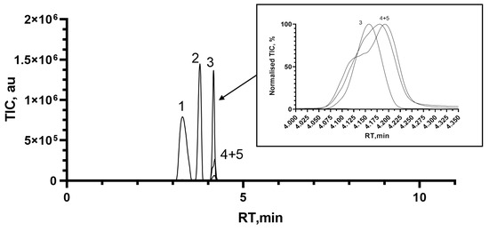 3.1. Optimisation of Chromatographic and Mass Spectrometric Parameters