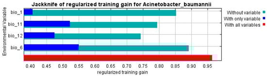 Jack-knife test of A. baumannii showing the most significant bioclimatic variable that affects its distribution.