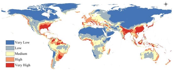The generated models were each individually visualized on a world map and exported using ESRI ArcMap 10.3 [50]. They were classified into different categories using Jenks natural breaks optimization and then color-coded to each visual interpretation.