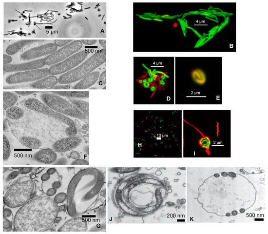 - Pillot, J.; Dupouey, P.; Ryter, A. La signification des formes atypiques et la notion de cycle evolutif chez les spirochtes. Ann. L’Inst. Pasteur 1964, 107, 484–502, 663–677. [Google Scholar]
