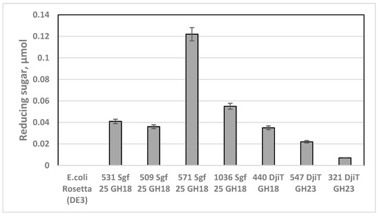 - Tsujibo, H.; Okamoto, T.; Hatano, N.; Miyamoto, K.; Watanabe, T.; Mitsutomi, M.; Inamori, Y. Family 19 chitinases from Streptomyces thermoviolaceus OPC-520: Molecular cloning and characterization. Biosci. Biotechnol. Biochem. 2000, 64, 2445–2453. [Google Scholar] [CrossRef]