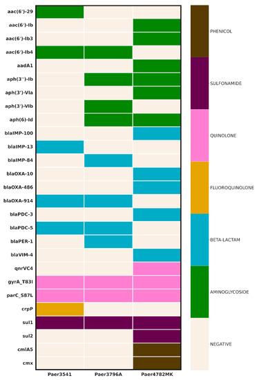 Paer3541 and Paer3796A were assigned to ST621, a clone previously associated with IMP carriage [55], while Paer4782MK belonged to the international high-risk clone ST233. In silico serotyping revealed that Paer3541 and Paer3796A were serogroup O4, while Paer4782MK was O11.