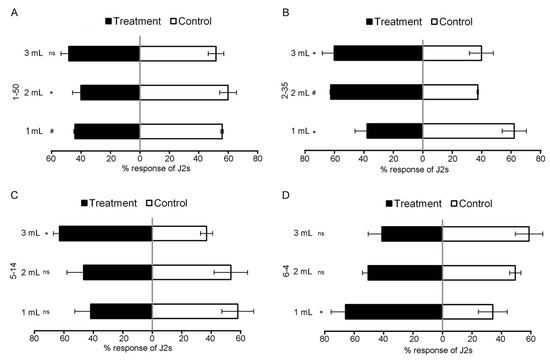 - Wang, P.; Sun, Y.; Yang, L.; Hu, Y.; Li, J.; Wang, J.; Zhang, F.; Liu, Y. Chemotactic responses of the root-knot nematode Meloidogyne incognita to Streptomyces plicatus. FEMS Microbiol. Lett. 2019, 366, fnz234. [Google Scholar] [CrossRef] [PubMed]