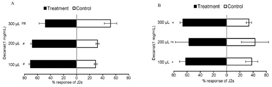 - Diez, J.A.; Dusenbery, D.B. Repellent of root-knot nematodes from exudate of host roots. J. Chem. Ecol. 1989, 15, 2445–2455. [Google Scholar] [CrossRef] [PubMed]