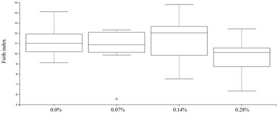 Faith’s phylogenetic diversity index observed in experimental groups.
