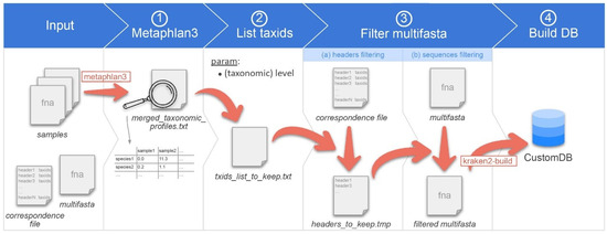 We initiated the building of a specific project database to improve on methods that proved unable to confirm the deleterious effects reported for a high proportion of Lactobacillus iners in the vaginal microbiota during pregnancy versus that of Lactobacillus crispatus [29]. Specifically, we experienced difficulties in the correct identification of species in samples, including Lactobacilli, when using large inclusive databases, such as those for Kraken2 (Figure S1). Further, when using MetaPhlAn3 in order to achieve more precise species identification, we were unable to confirm the presence of Klebsiella pneumoniae, an important pathogen that had been isolated and identified using clinical microbiological methods on the same samples. We therefore sought to address the shortcomings of existing methods and to improve the power and accuracy of our analyses of the human microbiota. Our goal was to build a flexible pipeline capable of constructing a project-specific database that was adapted to any environment.