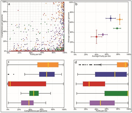 - Meyer, F.; Hofmann, P.; Belmann, P.; Garrido-Oter, R.; Fritz, A.; Sczyrba, A.; McHardy, A.C. AMBER: Assessment of Metagenome BinnERs. GigaScience 2018, 7, giy069. [Google Scholar] [CrossRef]