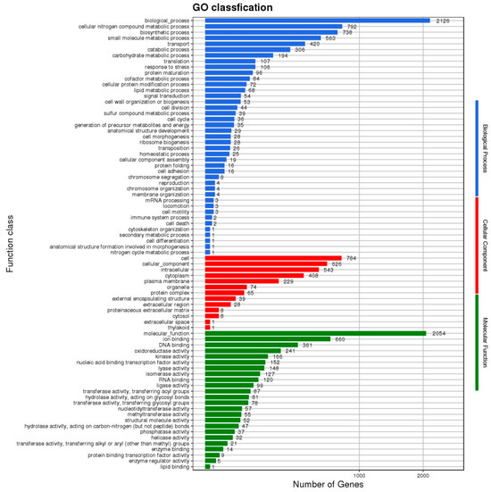 Function annotation was completed through a BLAST search against different databases, including the Non-Redundant Protein Database (NR), Gene Ontology (GO), Kyoto Encyclopedia of Gene and Genomes (KEGG), Cluster of Orthologous Groups of proteins (COG), and SWISS-PROT [31,32,33,34]. CGview was used to give an overview of the genome information [35].