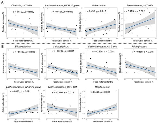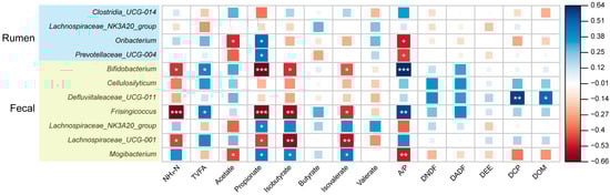 3.3. Relationship between Rumen and Fecal Bacteria and Fecal Water Content and Fermentation Profiles
