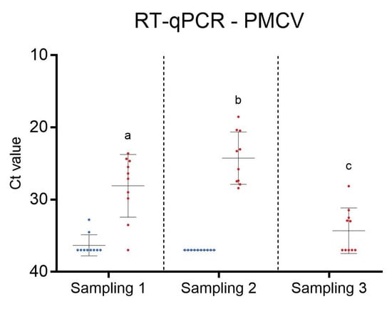3.2. RT-qPCR—PMCV (Cage 2 and 3)