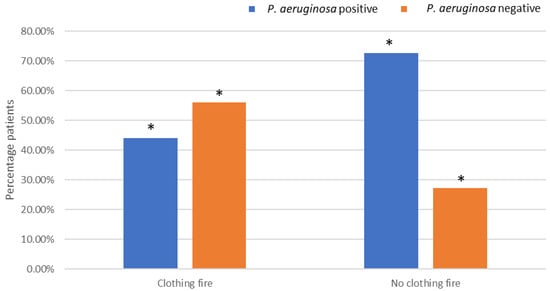 Effects of being involved in a clothing fire on P. aeruginosa colonisation. * Indicates significant difference.