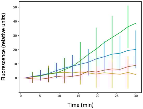 2.4. Analysis of Ciprofloxacin Accumulation in Bulk by Spectrofluorimetry