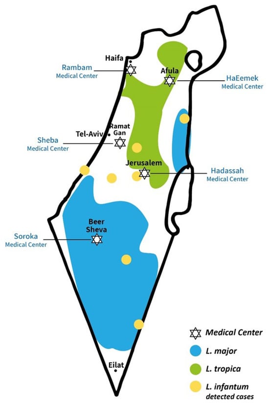 - Jaffe, C.L.; Baneth, G.; Abdeen, Z.A.; Schlein, Y.; Warburg, A. Leishmaniasis in Israel and the Palestinian Authority. Trends Parasitol. 2004, 20, 328–332. [Google Scholar] [CrossRef] [PubMed]