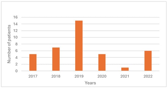 Total number of patients diagnosed with Leishmania braziliensis between the years 2017–2022.