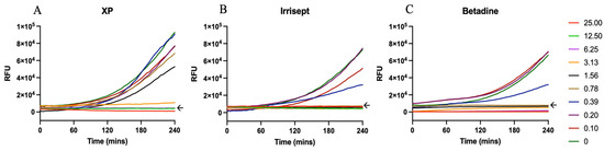 3.1. Irrigation Solutions Inhibit the Growth of S. aureus at Low Concentrations