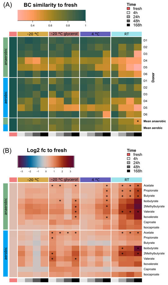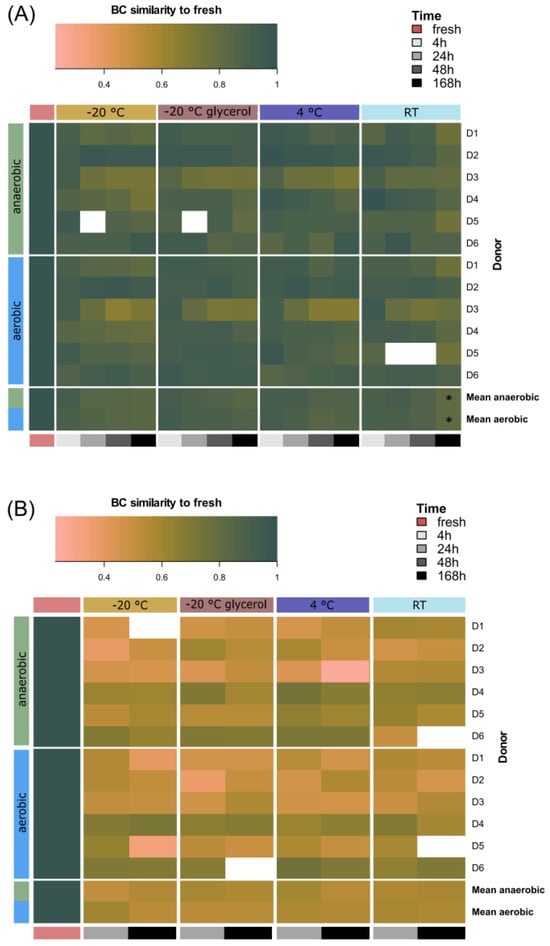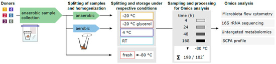- Lim, M.Y.; Hong, S.; Kim, B.-M.; Ahn, Y.; Kim, H.-J.; Nam, Y.-D. Changes in Microbiome and Metabolomic Profiles of Fecal Samples Stored with Stabilizing Solution at Room Temperature: A Pilot Study. Sci. Rep. 2020, 10, 1789. [Google Scholar] [CrossRef]