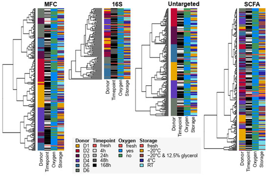 - Cunningham, J.L.; Bramstång, L.; Singh, A.; Jayarathna, S.; Rasmusson, A.J.; Moazzami, A.; Müller, B. Impact of Time and Temperature on Gut Microbiota and SCFA Composition in Stool Samples. PLoS ONE 2020, 15, e0236944. [Google Scholar] [CrossRef]